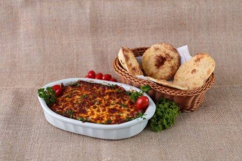 Petisco: Magdoussa Salim – Berinjela com carne à moda árabe, acompanha pão sírio.