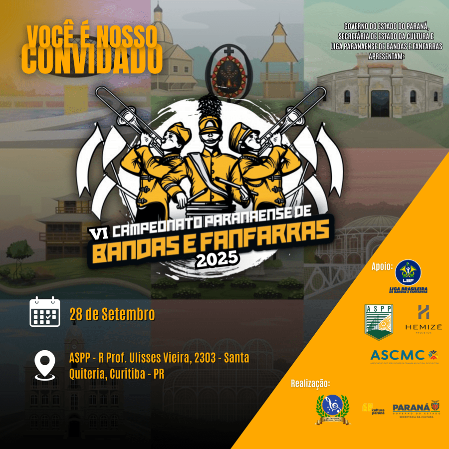 Neste domingo, 28 de setembro, a capital paranaense será palco da 6ª edição do Campeonato Paranaense de Bandas e Fanfarras, evento promovido pela Liga Paranaense de Bandas e Fanfarras com o apoio do Governo do Estado do Paraná, por meio da Secretaria de Estado da Cultura. Das 9h até às 21h, o evento vai […]