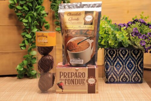 Entre elas, destaque ao Preparo Para Chocolate Quente 245g; que rende 1 litro, pode requentar e sai por R$ 34,90 e o Fondue de Chocolate 250g (acompanha embalagem que vai ao micro-ondas, pó de cacau e palitos de bambu) por R$ 52.