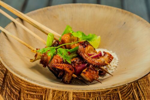 À frente da cozinha está o chef Fábio Vieira, um dos nomes promissores na gastronomia brasileira. Com passagens pelo Santo Grão e Cristalino Lodge, Vieira traz uma cozinha autoral, com ingredientes locais e respeito absoluto à sazonalidade. O menu valoriza pescados e mariscos da região, vegetais nativos, produtos da agrofloresta e receitas ancestrais reinterpretadas com leveza. A cozinha é, também, uma ferramenta de transformação: conecta o hóspede ao território por meio do paladar e valoriza os saberes da comunidade – do feijão-verde à puba, da farinha artesanal ao caldo de sururu.