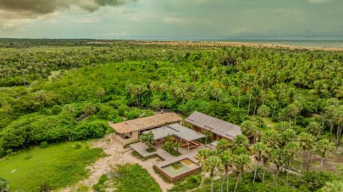Antes de qualquer construção, foi feito um zoneamento ambiental completo, identificando os diferentes ecossistemas da área – da caatinga ao mangue, da praia ao rio. A partir disso, nasceu um projeto alinhado aos princípios do turismo regenerativo: mínimo impacto ambiental, integração com o entorno, valorização da cultura local e tempo como experiência. A ideia era clara: não apressar processos. Observar, escutar e pertencer.