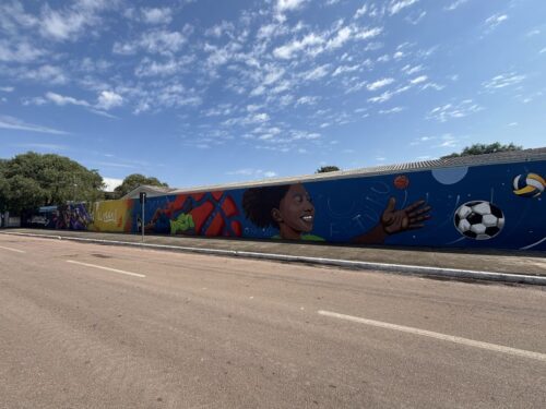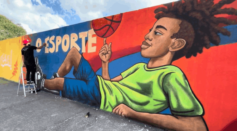 Os temas dos murais foram inspirados no esporte e no futuro. A pintura na escola abordou o esporte como ferramenta de transformação na vida da criança, destacando o projeto da tigre na área, “Maestro da Bola”. O objetivo foi ressaltar o impacto positivo do esporte no desenvolvimento humano, inspirando sonhos e fortalecendo valores. Já a intervenção na fábrica da Tigre, com o tema “Pintando o amanhã”, propôs uma reflexão artística sobre o futuro do planeta e a sustentabilidade, conectando o conceito à simbologia dos pincéis produzidos no local.