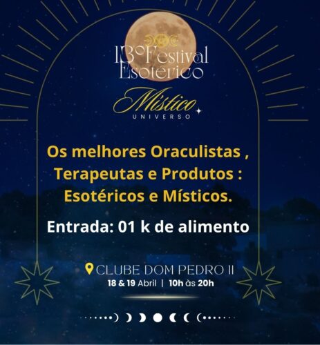 O Festival Esotérico Místico Universo chega à sua 13ª edição, celebrando a energia, a sabedoria e o reencontro entre corpo, mente e espírito. O evento acontece