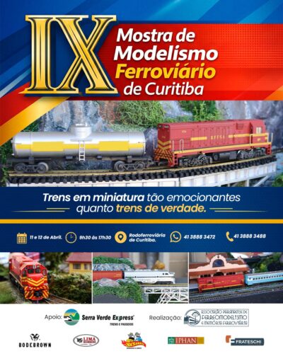 Nos dias 11 e 12 de abril, das 9h30 às 17h30, a Estação Rodoferroviária de Curitiba será palco da 9ª Mostra de Modelismo Ferroviário. Realizada