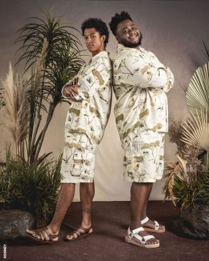 Composto por uma regata, uma calça cargo feminina, uma camisa over sized e bermuda masculina, os looks contam a trajetória de Simba, de sua infância, até virar Rei, em tons neutros e terrosos. A estampa foi criada com exclusividade pelos designers da TJama e propõe um olhar delicado, clássico e elegante para a história do protagonista, aliando essa visão ao mote Hakuna Matata, que conversa com a modelagem descontraída e utilitária.