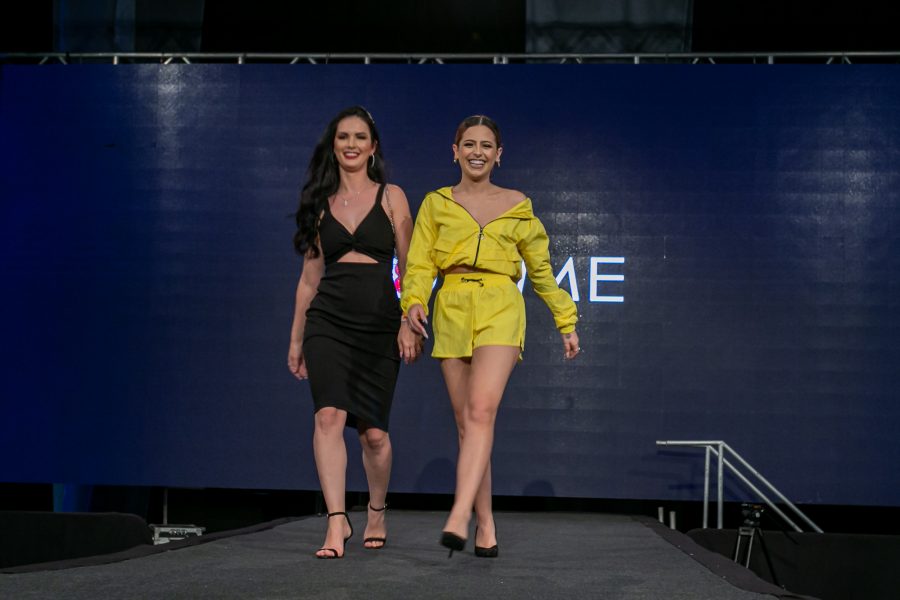 As influenciadoras digitais Amanda Pontes (amarelo) e Julia Doorman, foram destaque no desfile