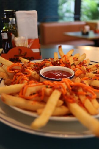 BATATA WALKA – Batatas rústicas temperadas, acompanhadas de cheddar e cebolinha.
