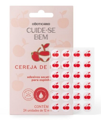 Tendência que ganhou força nas redes sociais e inovação no portfólio da marca, o Adesivo Secativo para Acne, em formato de cerejinhas, auxilia na cicatrização das espinhas com estilo e personalidade.