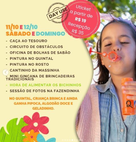 *Day use Uticket (antecipado pelo site) a partir de R$19. Na recepção: R$ 35