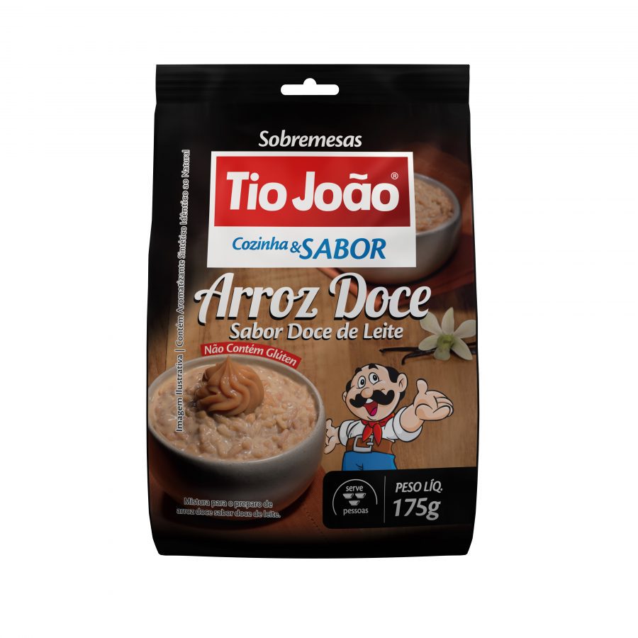 Desenvolvido especialmente para proporcionar cremosidade e intensidade de sabor, o Arroz Doce Tio João pode ser encontrado no mercado nos sabores tradicional, coco e doce de leite. Muito fácil e prático de fazer, basta adicionar água e seguir o modo de preparo e, então, em poucos minutos saborear o quitute com gostinho de receita caseira.