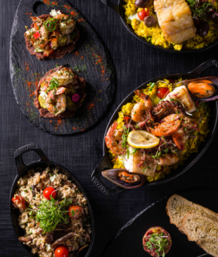 Entre as Tapas, destaque para a de Pato Confitado e Polvo, com redução de vinho e especiarias (R$29,90); a Croqueta de Jamón Ibérico (R$22,90 – duas unidades/ R$39,90 – 4 unidades); a Lulas Grelhadas (R$39,90), com lulas grelhadas e molho cítrico, entre outras. Já entre os pratos principais, vale destacar a Paella Clássica de frutos do mar e açafrão (R$179,90 – para duas pessoas); o Arroz de Pato Confitado (R$159,90 – para duas pessoas), com tranche de peixe, jamón, emulsão cítrica e crispy de couve (R$59,90 – para 1 pessoa/ R$99,90 – para 2 pessoas); e o Arroz Negro com Chorizo e Lulas (R$59,90 – individual), com maionese defumada de páprica e brotos. Já nas sobremesas, Churros crocantes com calda de chocolate (R$19,90) e o Creme Catalão (R$15,90), um creme típico da comunidade da Catalunya, elaborado a base de leite e canela com fina cobertura de chocolate, são os mais pedidos.