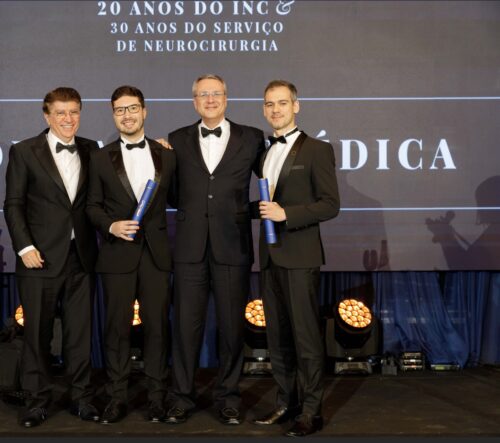 Na cerimônia, foram realizadas a premiação dos colaboradores que se destacaram pelo desempenho em 2023 e a tradicional Formatura dos Residentes. “O nosso hospital foi construído puramente pelo esforço dos médicos e sócios. Desde o começo, nosso projeto era criar um hospital de atendimento de alta complexidade e que tivesse toda infraestrutura e condições dos melhores centros do mundo. E posso dizer, com enorme orgulho, que não existe no Brasil outra instituição que ofereça em neurocirurgia aquilo que temos no INC”, afirmou o Dr. Ricardo Ramina. “Atuamos com uma equipe exclusiva de neurocirurgiões, que se reúnem todos os dias para discutir juntos os casos que atendemos. Não conheço outro hospital que tenha essa conduta. Investimos continuamente em pesquisas e inovações da ciência e da tecnologia, justamente porque não existe Medicina ‘de ponta’, sem o interesse científico”.
