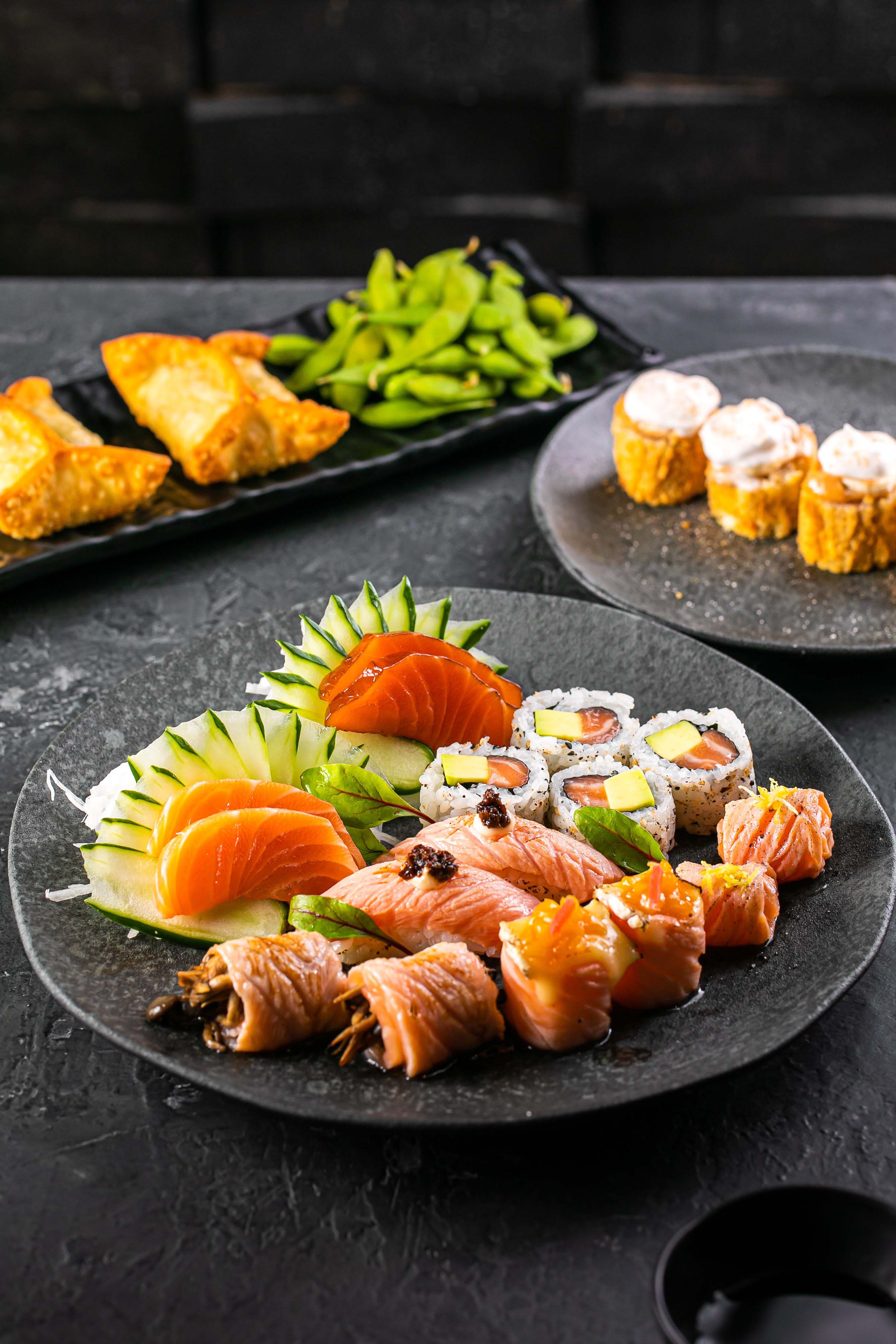 Para a entrada, a sugestão é Edamame, que consiste em porção de vagem verde de soja, cozida e salgada; e o Osaka, uma massa de pastel recheada com salmão, abacate, limão e temperos caseiros, servida com molho de pimenta adocicada feito na casa; seguido pelo prato quente Take Flambado (vegetariano), que conta com cogumelos shitake, paris e portobello salteados na manteiga com shoyu e saquê, acompanhados de porção de arroz japonês e moyashi; ou pelo Duo Flambado, com cogumelos shitake, paris e camarões médios salteados com shoyu e flambados no saquê, acompanhado de arroz japonês, palha de alho poró e chips de mandiopã.