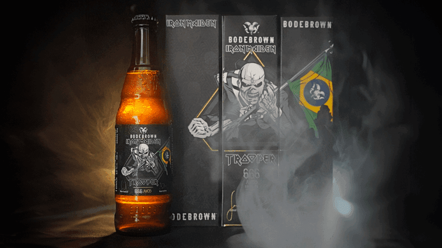 A Trooper Brasil IPA marcou o início da fértil parceria entre a Bodebrown, cervejaria curitibana que está entre as mais premiadas do continente, e o Iron Maiden, maior banda de heavy metal do planeta e grande ícone do rock. Lançada em 2019, ela foi criada como fruto da colaboração direta entre os irmãos Samuel e Paulo Cavalcanti, da Bode, com o vocalista Bruce Dickinson, que além de estrela da música, piloto de avião e campeão de esgrima, é cervejeiro artesanal.