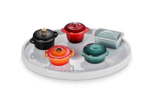 Para complementar a seleção de produtos criados em comemoração ao centenário, a marca francesa criou uma coleção de miniaturas das suas panelas mais icônicas: Mini Cocotte, Panela Redonda Modern Heritage, Panela de Arroz e Travessa com Tampa.
