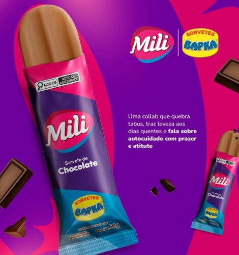 Entre as ações está a collab com outra marca local: a Bapka Sorvetes, que entregará mais de 10 mil picolés nas ativações da Mili até o início de fevereiro.