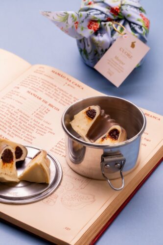 Um dos lançamentos mais surpreendentes da Cuore é o Manjar (100g R$79,50), que remete à tradicional sobremesa manjar de coco e ameixa. Aqui, em formato miniatura, leva casquinha de chocolate branco e recheio cremoso de chocolate branco com leite de coco, e camada de recheio de chocolate com ameixas. Além de extremamente saboroso, vem em uma embalagem de panelinha que sintetiza bem o tema escolhido pela Cuore para a sua Páscoa 2026.