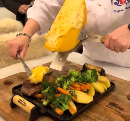 Para acompanhar a Picanha com Raclete de Queijo, a chef oferece uma ampla carta de vinhos com rótulos entre argentinos, chilenos, italianos, espanhóis, portugueses e franceses, que harmonizam perfeitamente com os pratos servidos.