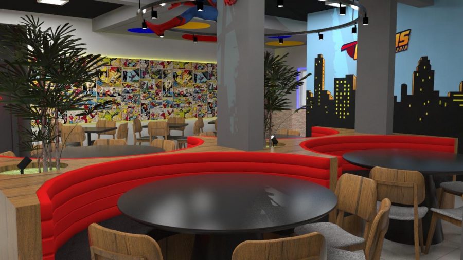 Imagine uma pizzaria que vai além de servir pizzas, que tem como máxima oferecer uma experiência pra lá de divertida: fazer você se sentir em uma história em quadrinhos. Essa é a Liga dos Heróis Pizzaria que inaugura dia 4 de dezembro, no bairro Hugo Lange, em Curitiba. A casa é toda inspirada em heróis e heroínas. Logo que se entra, o cliente se depara com um cenário que remete aos famosos gibis: é colorido, divertido, recheado de coisas que chamam a atenção como um boneco gigante do Dr. Caos, um super vilão pendurado no teto. Mas as surpresas vão além, quem serve as pizzas são garçons usando fantasias de diferentes personagens, entre eles, Homem Aranha, Mulher Maravilha, Capitão América e os personagens exclusivos da casa Velox e Merri Starr, criados pelo cartunista Rodrigo Arraya. Todos já estão sendo apresentados ao público nas redes sociais do empreendimento.