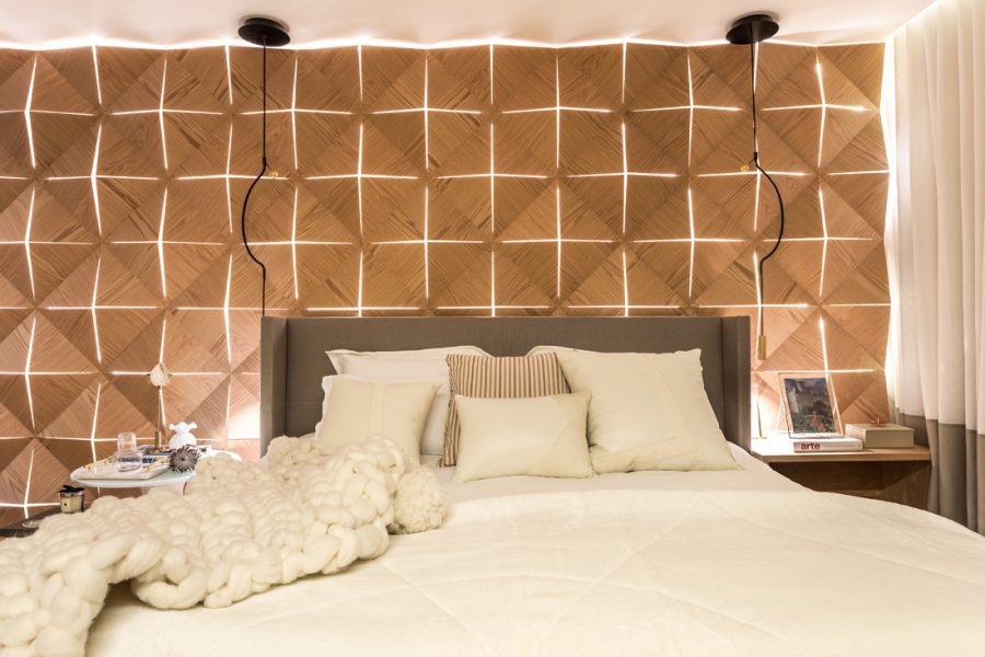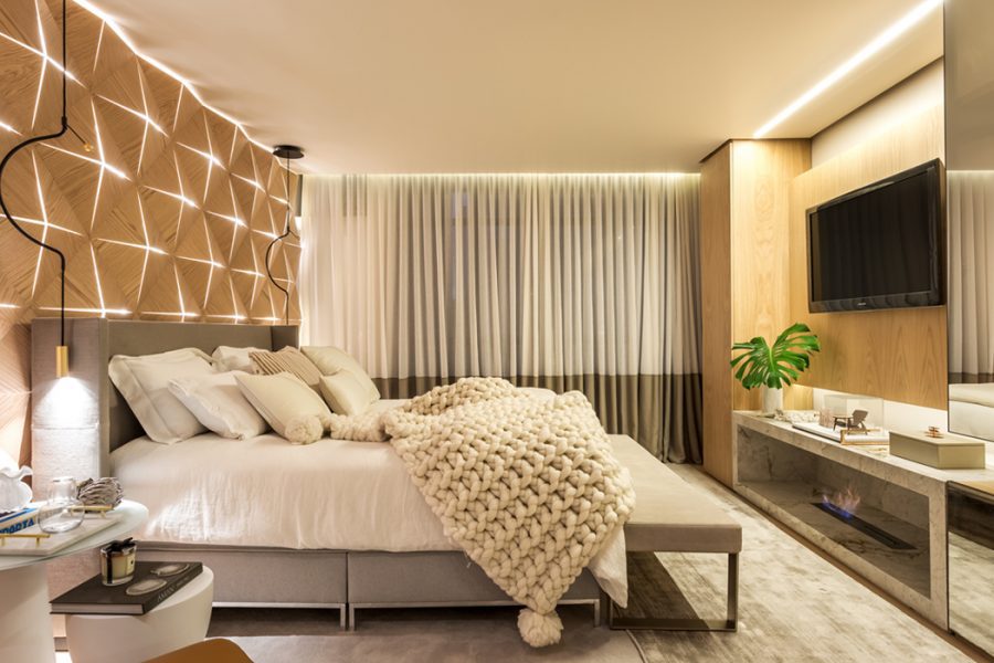 O “Studio 33” da arquiteta Carla Grüdtner também contou com produtos Cosy Home. O projeto de 38m² foi criado em homenagem ao fotógrafo Eduardo Macarios e trouxe hall de entrada, cozinha embutida, quarto e banheiro com proposta jovial e contemporânea. O papel de parede e os tons claros na cortina para completar a ambientação foram opções encontradas na Cosy.