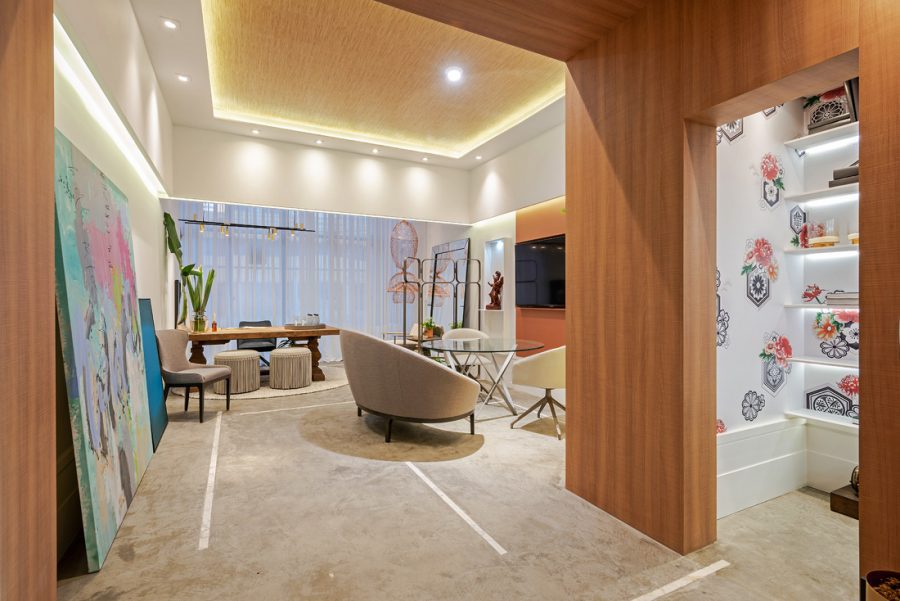 Entre eles está o espaço assinado pelo escritório Architetonika Nomad, gerenciado pelo arquiteto Ary Polis e pelo decorador Renan Mutao, o “Bar de Vinhos e o Home Theater”. O ambiente tem inspirações da década de 60 e foi projetado para os amantes da tecnologia e colecionadores de obras de arte. A leveza do projeto acontece com os tecidos da Cosy Home, que foram aplicados na cortina, da marca Entreposto, e em pufes, almofadas e mantas para os sofás da Missoni Home, exclusividade da loja em Curitiba.
