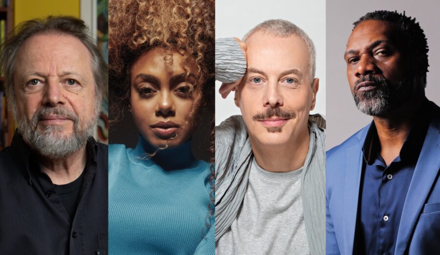 foto- Cristovão Tezza, Dandara Mariana, Guilherme Weber e MV Bill – Cred. Vinicius Mochizuki, Sérgio Baia, Allan França e Divulgação