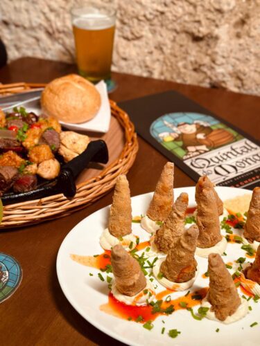 Entre os destaques da cozinha, estão a tradicional carne de onça, reconhecida como Patrimônio Cultural Imaterial de Curitiba e que recentemente recebeu o selo de Indicação Geográfica, os famosos canudos Capadócia — empanados e recheados com frango e catupiry — e as opções de carnes na chapa, como o Trio Quintal, que combina cubos de mignon, peito de frango e calabresa, acompanhados de queijo coalho, cebola e pimenta de bico.