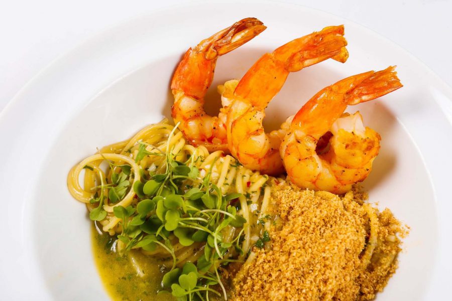 Os frutos do mar também são combinados com massas e risotos. O Spaghetti di grano duro aglio, olio, peperoncino e camarões apresenta um típico molho da costa mediterrânea da Itália, que leva ervas finas, alho, pimenta calabresa e camarões (R$ 69). Há outra pedida de Spaghetti artesanal, o negro (que leva tinta de lula e é feito na casa), com polvo e pancetta (R$ 89).