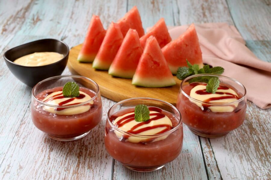 Dica: para o suco de melancia, bata 400g de melancia em pedaços no liquidificador.