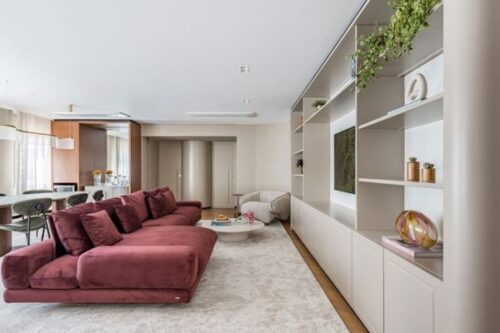 Vinho – Marcante define a presença do marsala, que na história da arquitetura fez presença como uma cor ligada à aristocracia. Entretanto, os tempos mudaram: os tons de vinhos seguem eternos nos projetos, mas como uma pegada moderna. “Ela vai muito bem nos sofás”, reitera Ana.