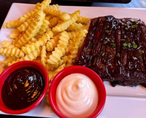 Pork Ribs & French Fries – Costelinha de porco com barbecue (400 g) assada e defumada por mais de 8 horas. Acompanha uma porção de batata frita (200 g) levemente temperada com lemon pepper. R$ 66