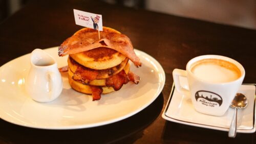 Extremely American Pancake & Cappuccino – Combinação incrível das famosas panquecas americanas, bacon e calda de panqueca. Acompanha um clássico cappuccino (De R$54,50 por R$43,60).
