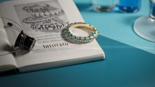 A confecção do anel giratório é um processo complexo e minucioso que exige um total de 65 horas: 55 horas dedicadas à esmaltação e 10 horas à confecção e à montagem dos pontos em ouro. Para cada um dos anéis em Tiffany Blue®, o processo de esmaltação paillonné possui três etapas – aplicação da folha de ouro ou prata, seguida do esmalte e da queima – e é repetido até três vezes para alcançar a profundidade e a riqueza de cor desejadas, que irradiam uma luminosidade excepcional.