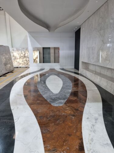 Essas chapas podem ser produzidas em acabamentos polido (com brilho) e levigado ou escovado (ambos sem brilho). E por fim, após passado pelo processo de extração e industrialização, o mármore está pronto para ser comercializado por marmorarias que irão executar os projetos de pias, escadas, balcões, colunas, lareiras e até onde a criatividade permitir.