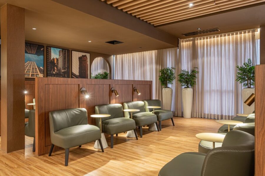 Localizado em frente ao portão 5, na área de embarque doméstico, o lounge foi concebido para ser um refúgio de conforto, produtividade e bem-estar — transformando o tempo de espera em uma experiência verdadeiramente diferenciada.
